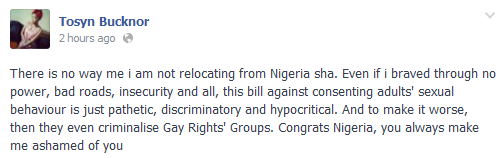 The TV/Radio personality took to Facebook today to register her displeasure on the purported signing into law of the anti-gay bill that seeks to sentence gay persons to 14years in prison by the president.
