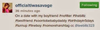 Tiwa Savage announces that she's pregnant on her Instagram.