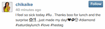 Chika Ike just got a huge diamond ring as something special from her boo, who I hear isn't Nigerian. She showed off the ring on her personal instagram page today.